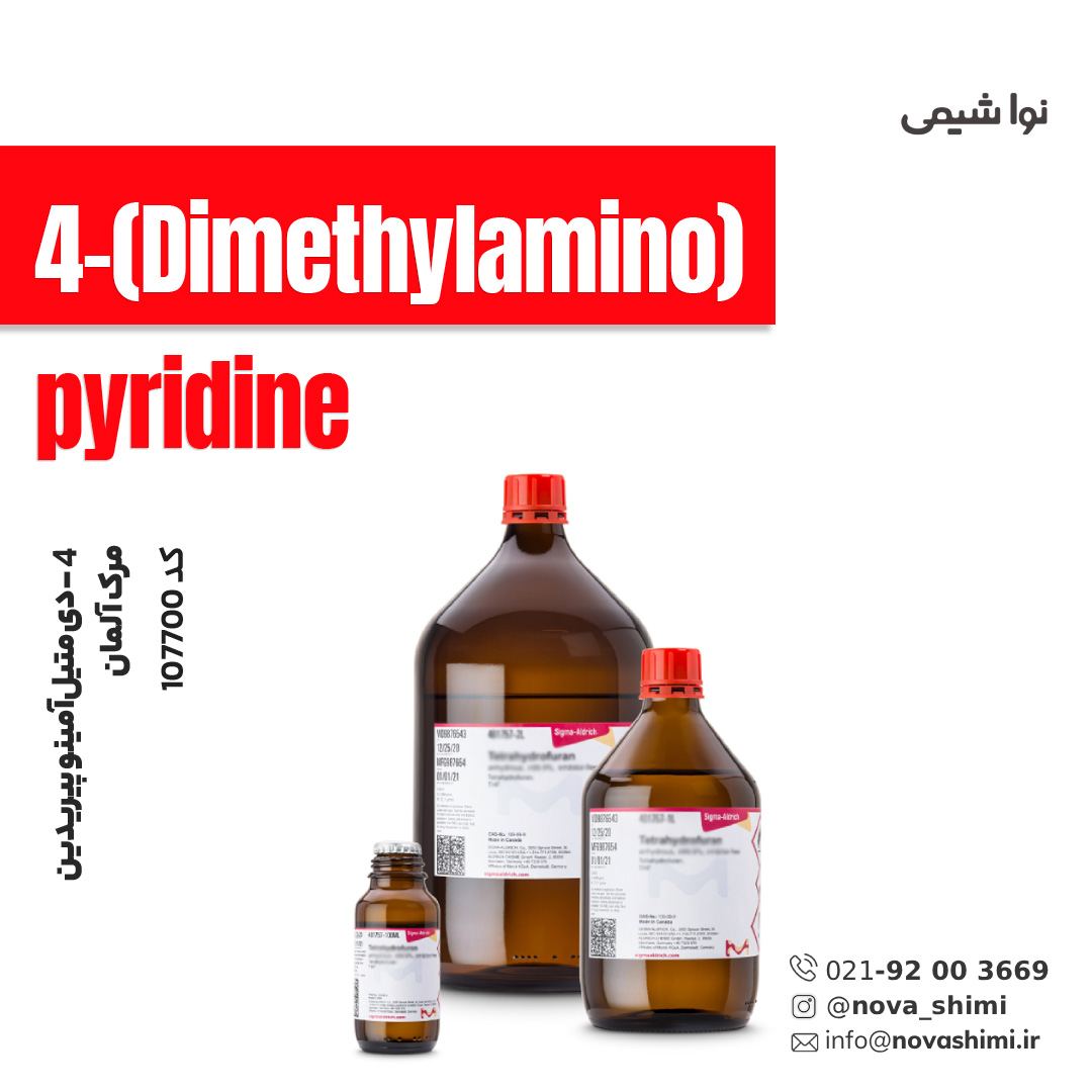 4-دی متیلآمینو پیریدین یک ترکیب آلی هتروسیکلیک با فرمول C₇H₁₀N₂ و کاتالیزور نوکلئوفیلیک قوی در واکنشهای آسیلاسیون و سنتزهای پیشرفته آلی است که به دلیل ماهیت آمینی خود در دسته ترکیبات قلیایی و باز قرار میگیرد. شرکت نُـوا شیمی، به عنوان یکی از تامین کنندگان مواد آزمایشگاهی و اسید های برند مرک و سیگما آلدریچ، آماده ارائه خدمات فروش 4-دی متیلآمینو پیریدین مرک آلمان کد 107700 به شما عزیزان خواهد بود. برای دریافت اطلاعات فنی و استعلام قیمت مواد آزمایشگاهی مرک، از طریق شماره 02192003669 با کارشناسان فروش نُـوا شیمی تماس حاصل فرمایید.
